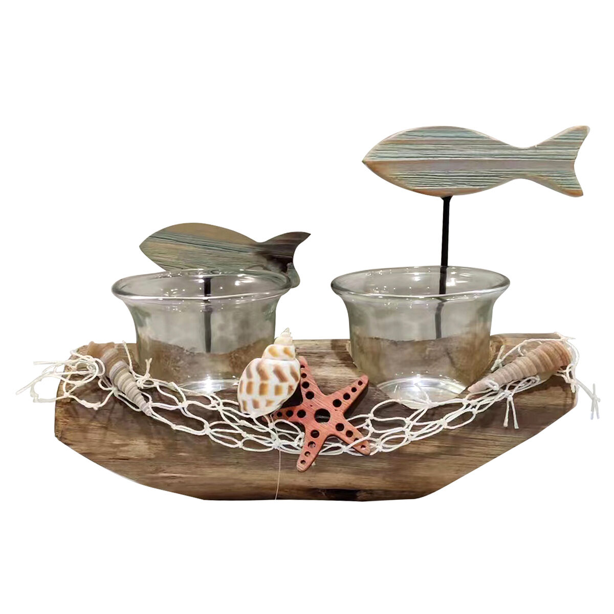 Candleholder Signes Grimalt Fish Wood 7 x 12 x 18 cm